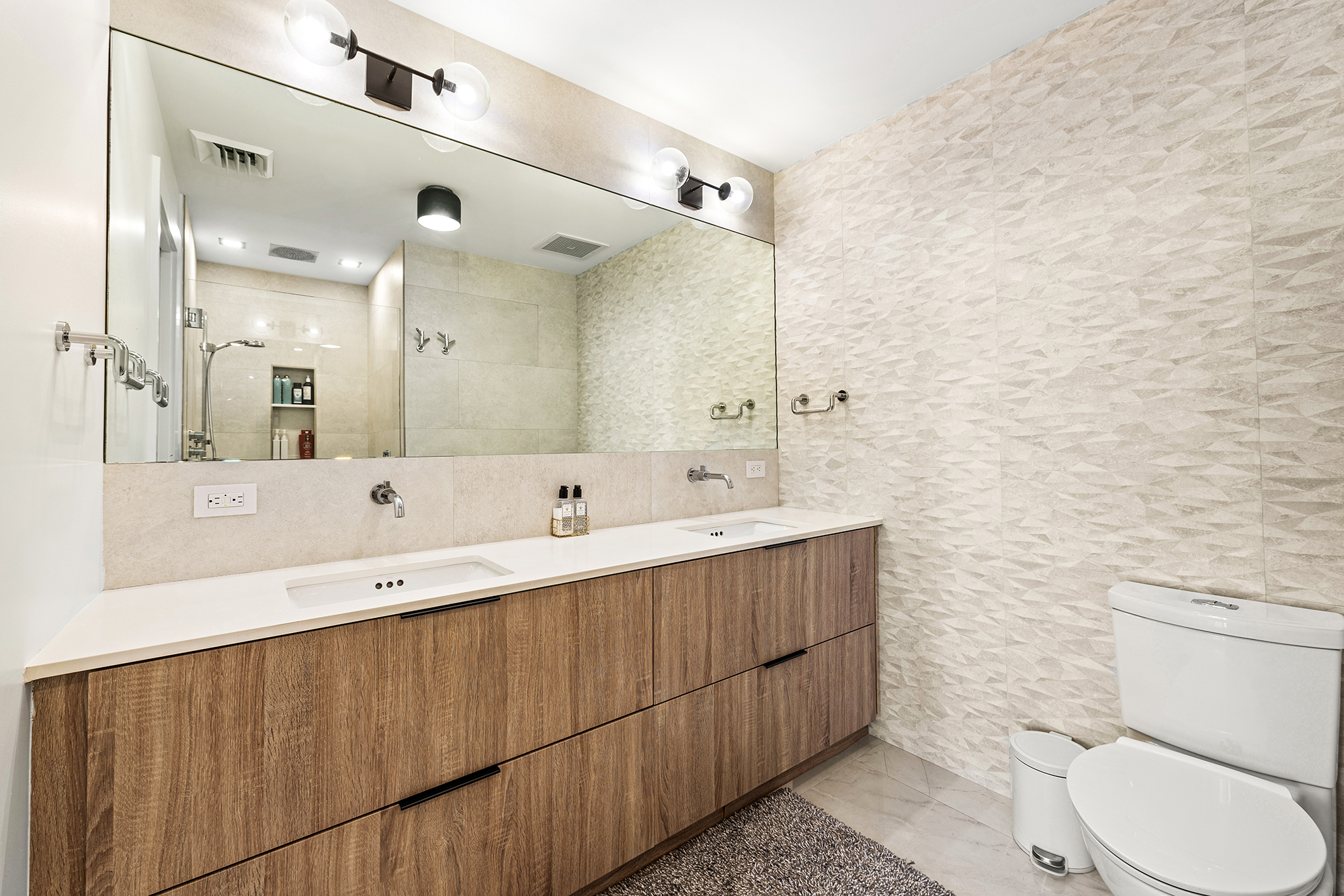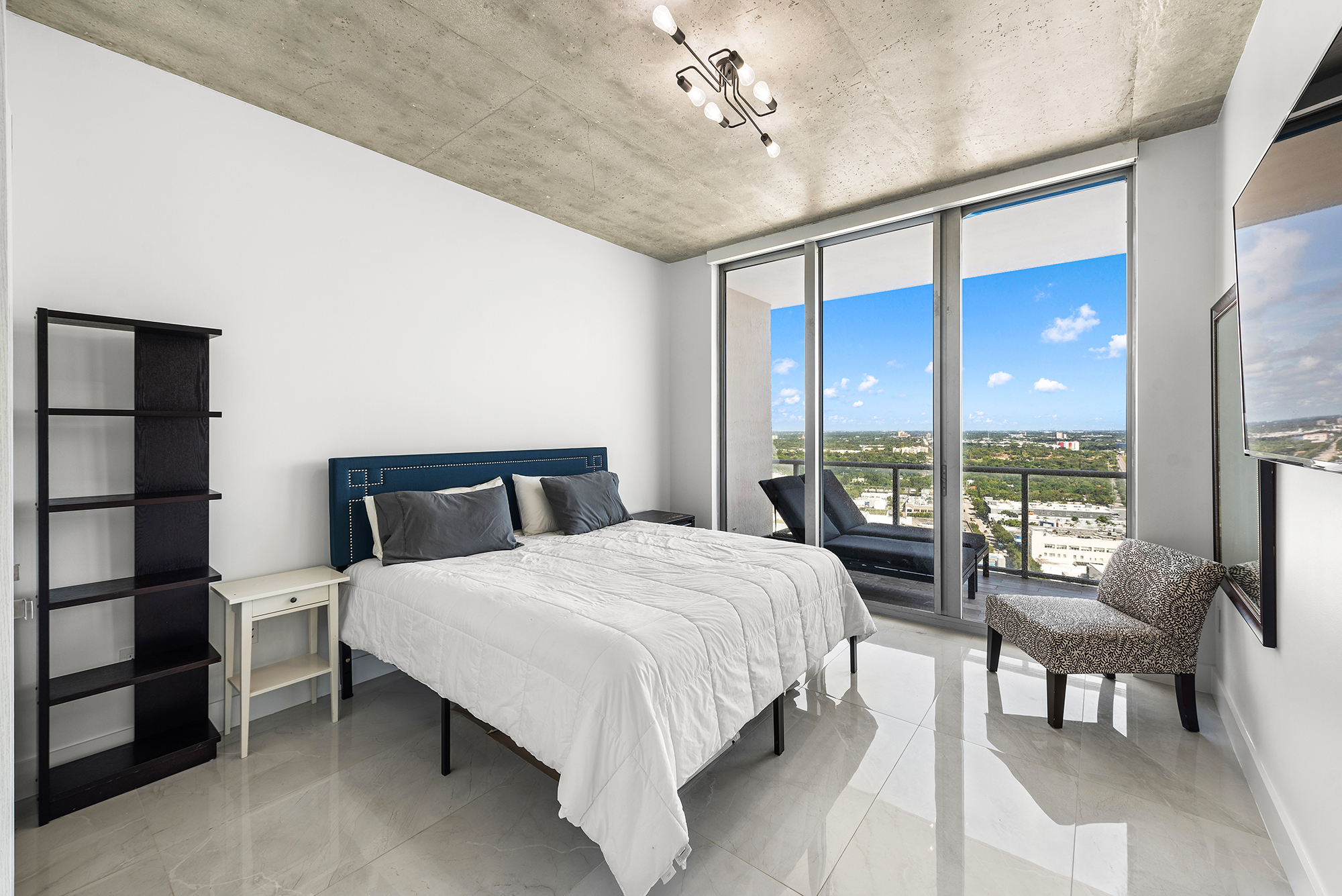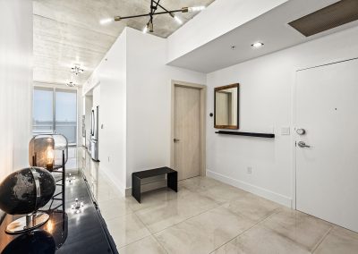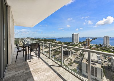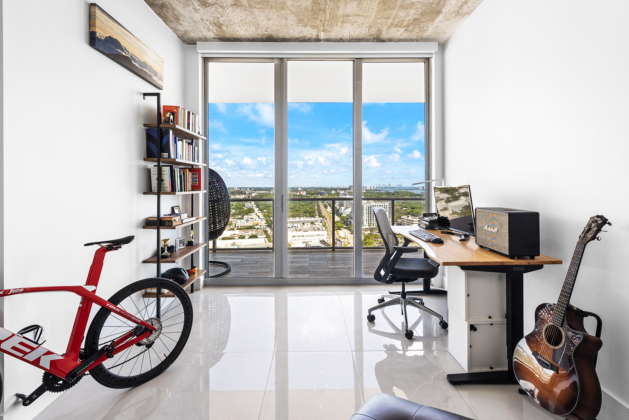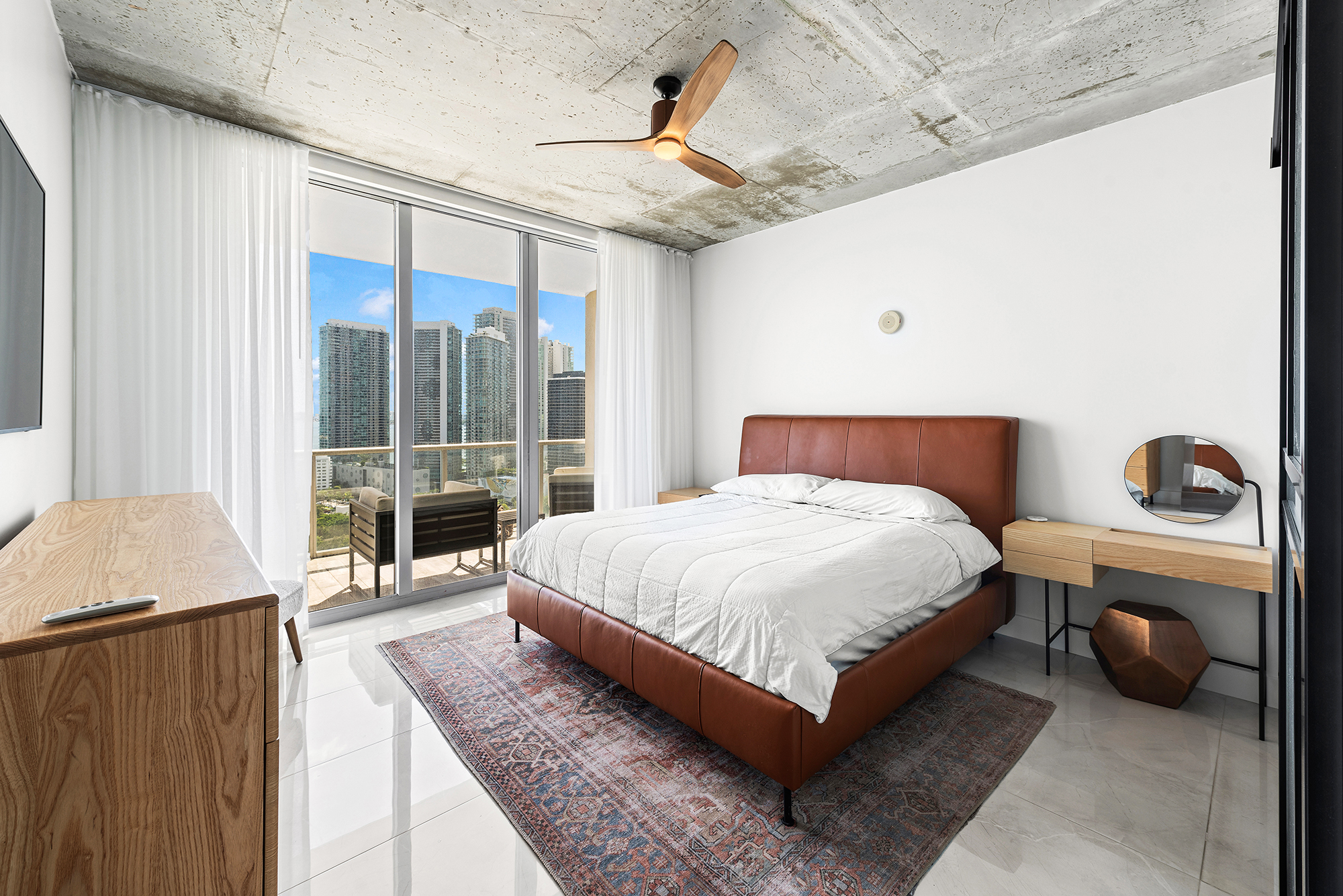Renovated with style, this 3-bed/2.5-bath NE corner residence on a high floor at 2Midtown offers breathtaking views of Biscayne Bay and the skyline. With over 2,200 sq. ft. of meticulously remodeled living space, this unit features a custom two-tone kitchen with a quartz waterfall island, upgraded bathrooms, and Opustone accent walls. The primary bath is outfitted with a Hansgrohe shower system, and the unit includes designer doors and closets, restored concrete ceilings, and oversized Parmesa Ceramica tiles. The expansive wraparound terrace offers dramatic day and night views.